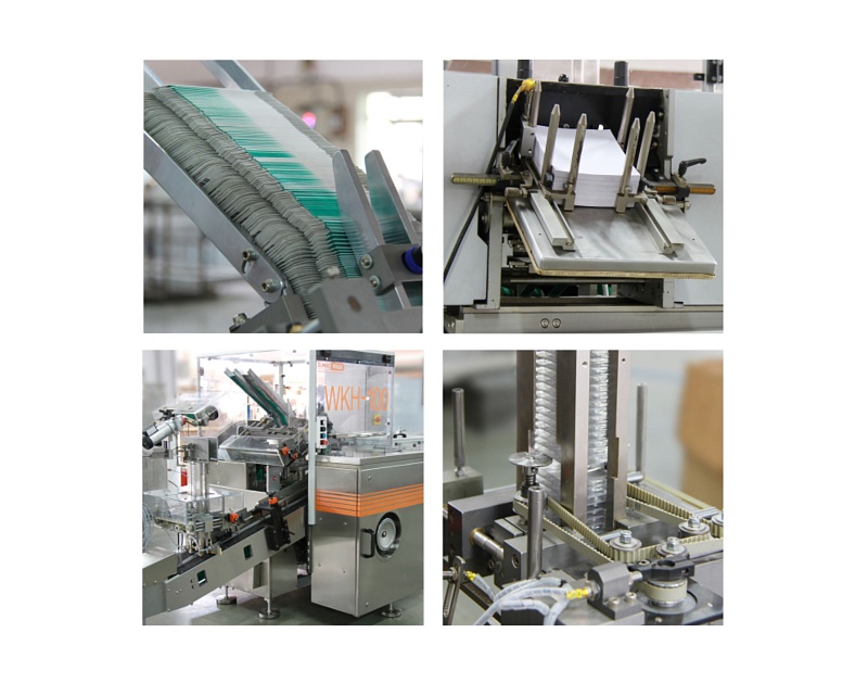 WKH-100 – это универсальный картонажный автомат прерывного действия, предназначенный для упаковки блистеров, флаконов и туб в картонные коробки в фармацевтической и косметической промышленности.